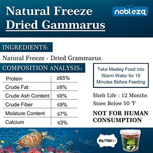 - ? DELICIOSO: 100% natural, sin colorantes, saborizantes o conservantes añadidos, una gran alternativa a los gusanos adultos. Para las tortugas que son algo quisquillosas con la comida, la comida puede ser introducida lentamente en la dieta de la mascota para aumentar su motilidad y la atracción por la comida en el agua.