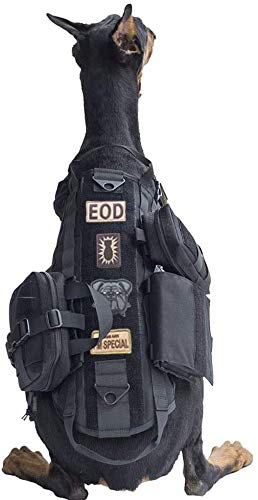 Chaleco táctico para mascotas, Molle con desmontables Las bolsas 3 piezas, con etiquetas engomadas mágicas, Formación caza al aire libre del arnés, conveniente para el medio perros grandes,A,XL