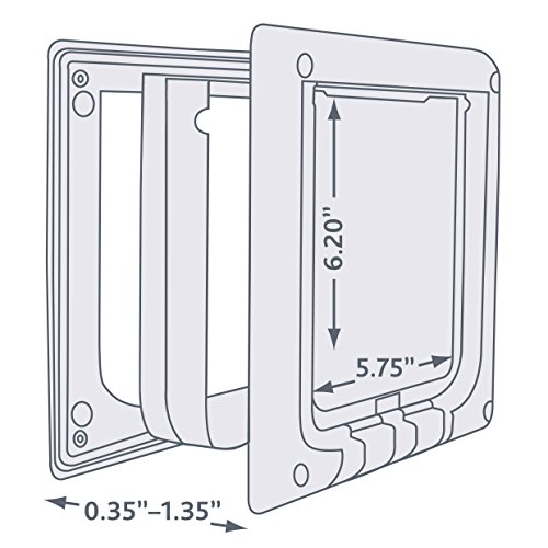 - ☞ Tamaño y aplicación: Tamaño exterior: 28 cm x 24,9 cm x 5,5 cm. Tamaño interior: 22 cm x 20 cm. Tamaño de corte: 24 cm x 21 cm. Adecuado para puertas y paredes finas. Apto para gatos y perros de menos de 12.49 kg y con cintura inferior a 63 cm.