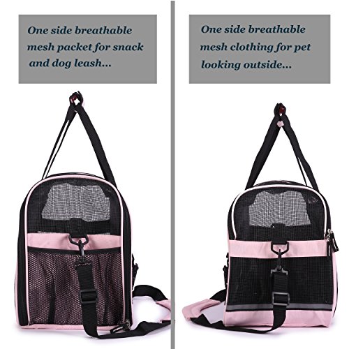 Petcomer Transportín para Perros Y Gatos Portador del Mascota Bolsa de Malla Transpirable de Viaje Bolso de Hombro(Rosa, M 43x23x29 cm)