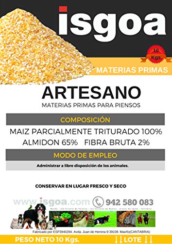 MAIZ Cascado Artesano para Gallinas, Pollos. Saco 10 kg Isgoa