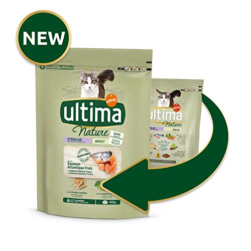 Ultima Nature Pienso para Gatos Esterilizados con Salmón, Pack de 8 x 400g - Total: 3.2kg