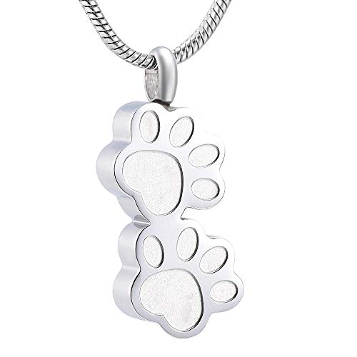 KBFDWEC Collar de urna Conmemorativa de Acero Inoxidable con Doble Pata de Perro/Gato para Cenizas de Mascotas, Recuerdo, joyería de cremación, Colgante, medallón